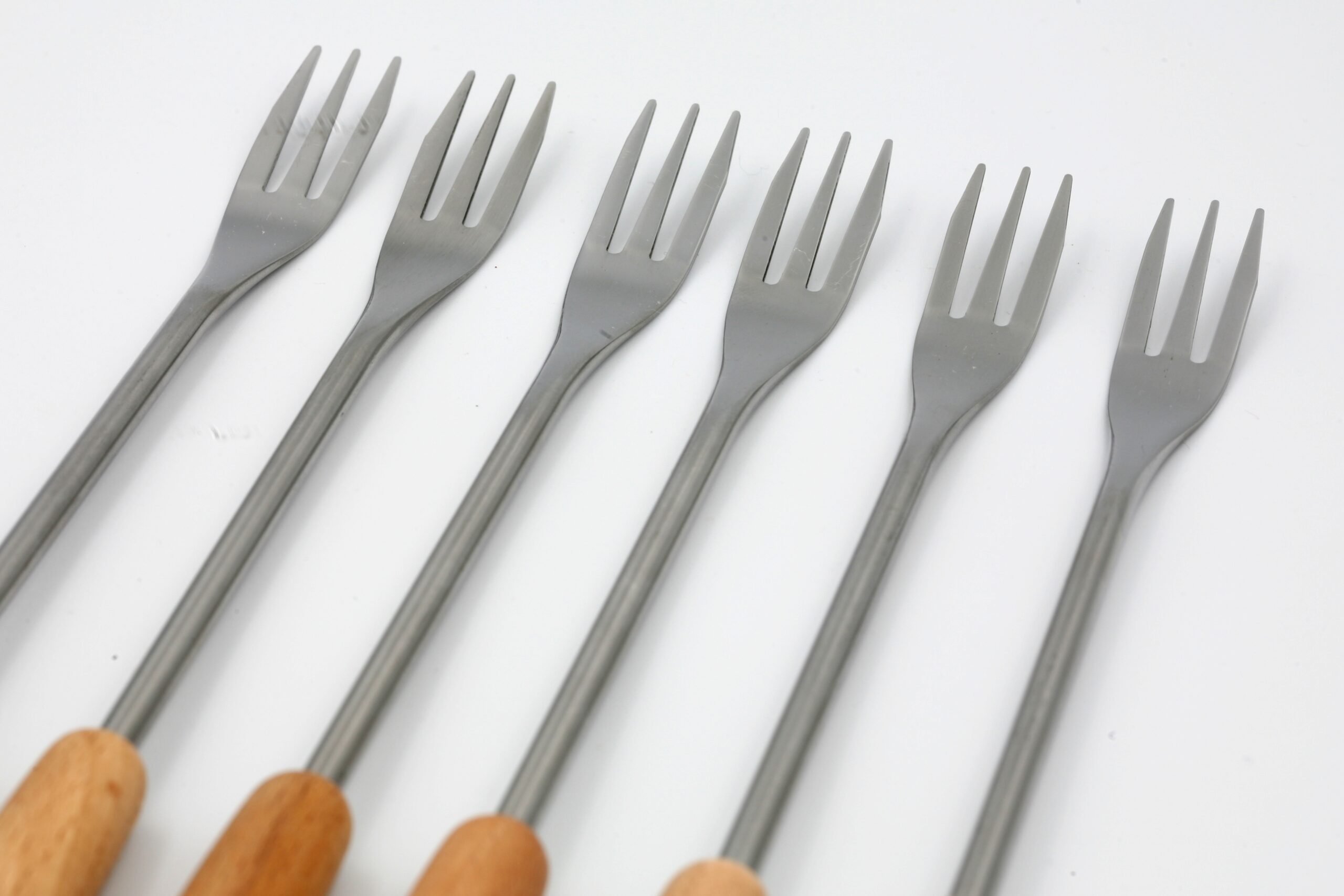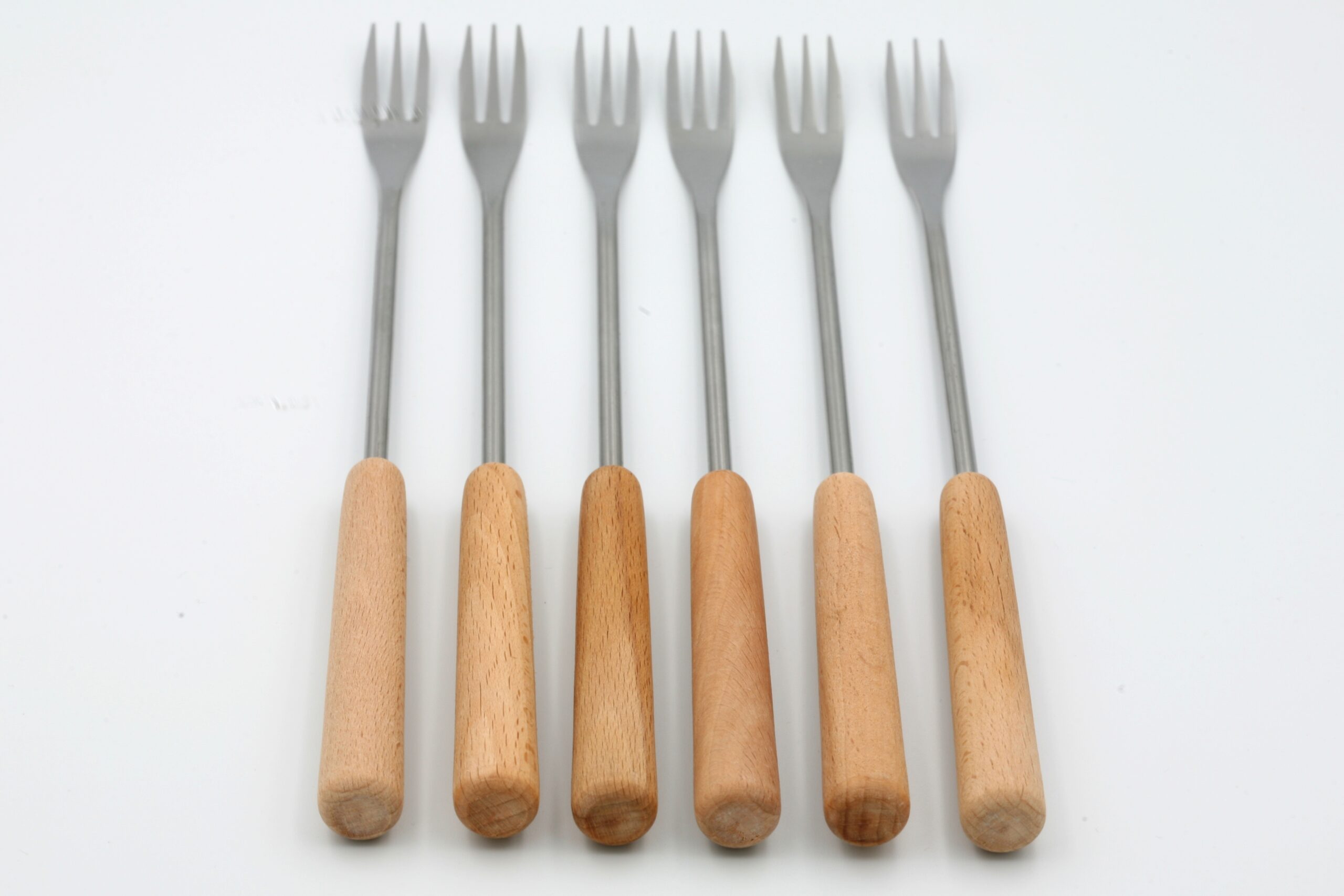 6 fourchettes en inox et bois clair.