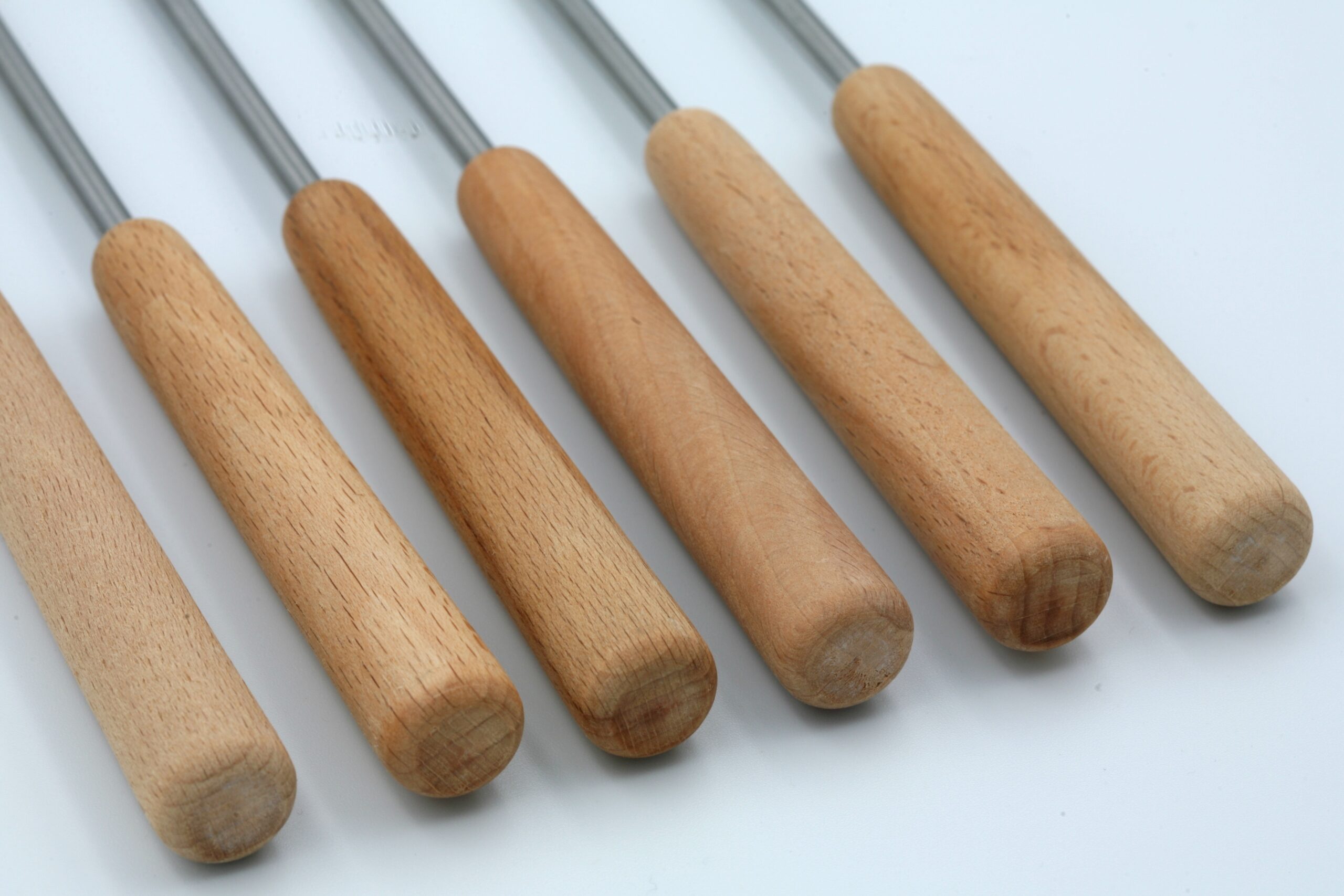 Elles sont en inox et en bois clair.
